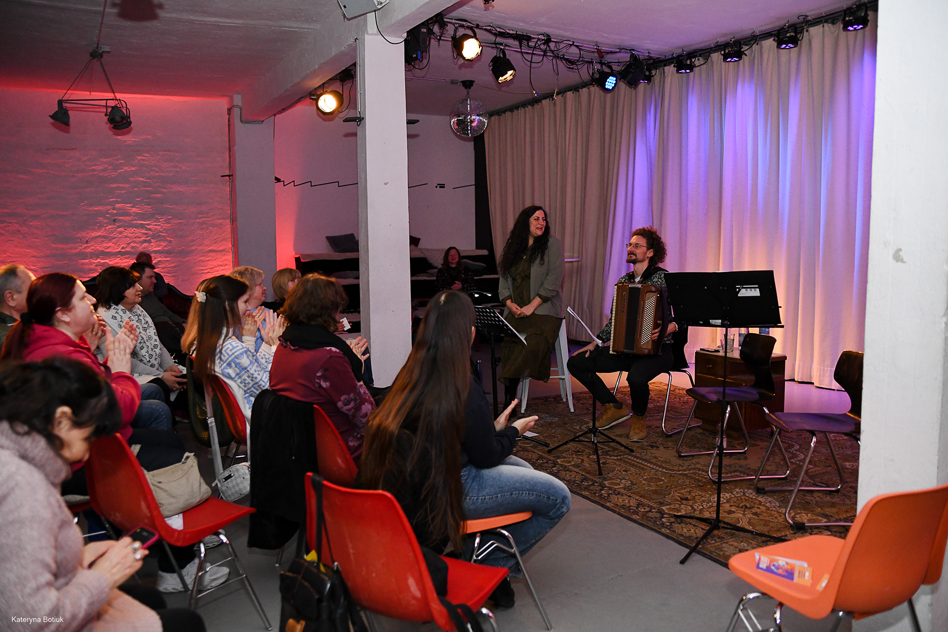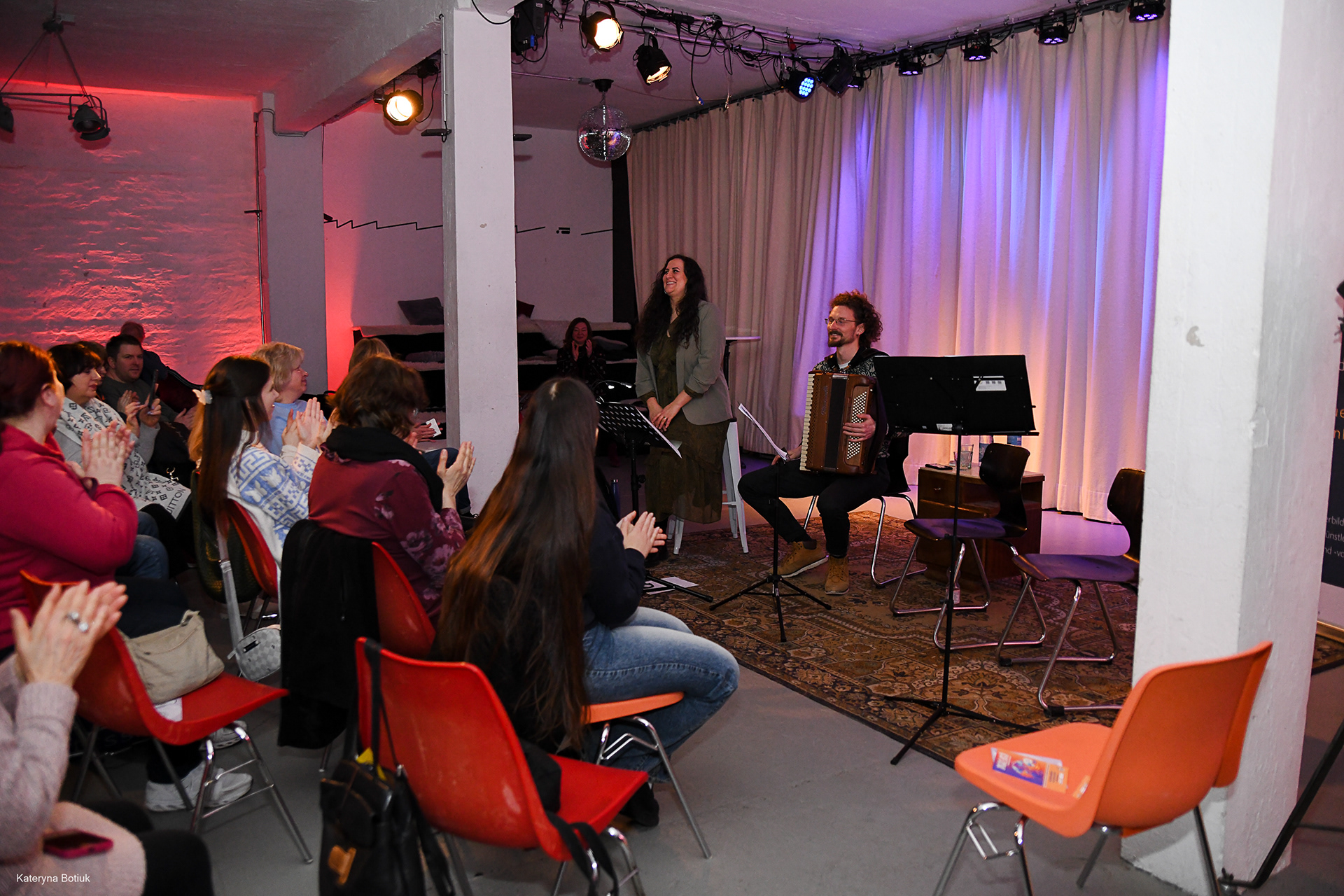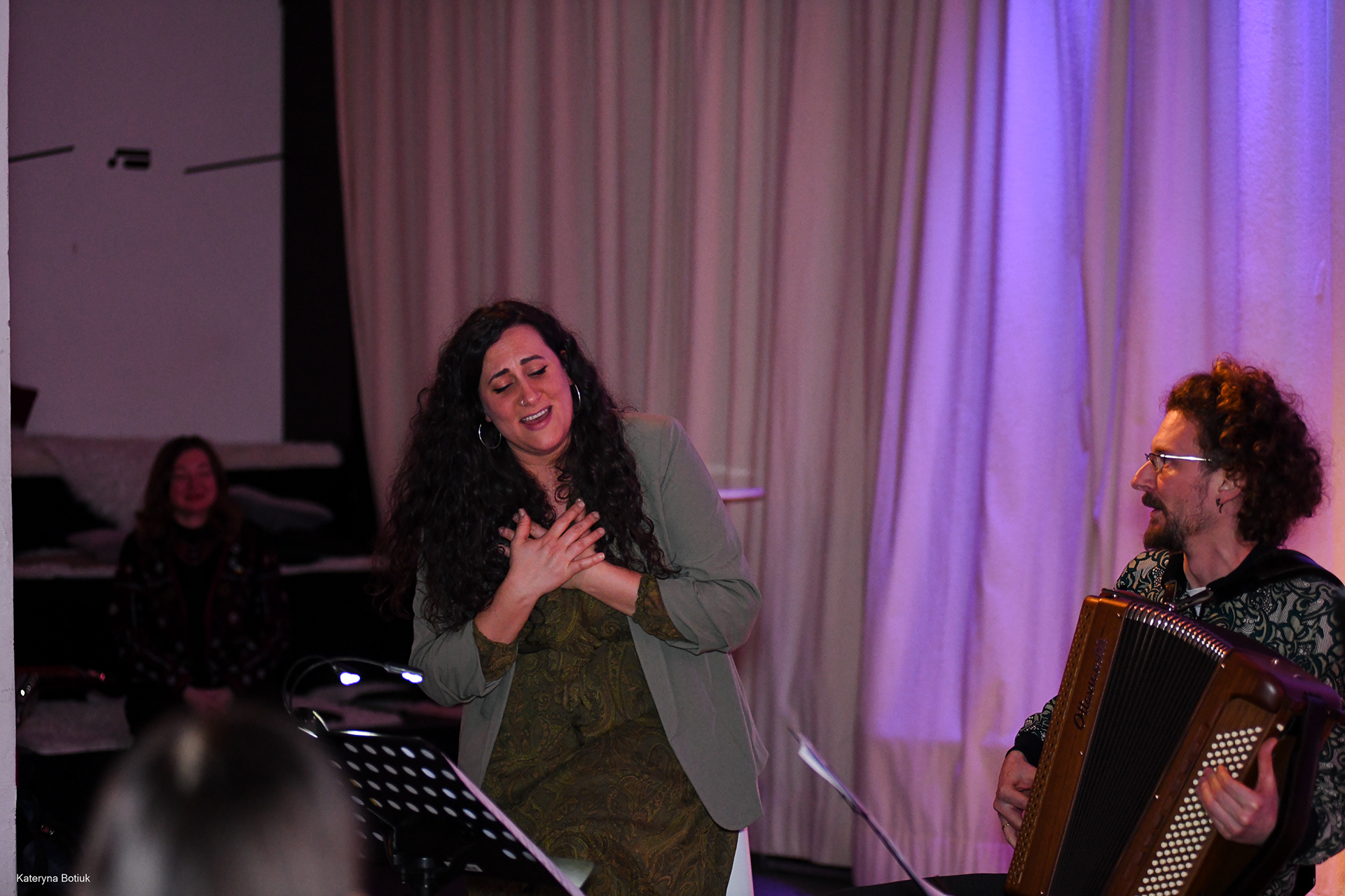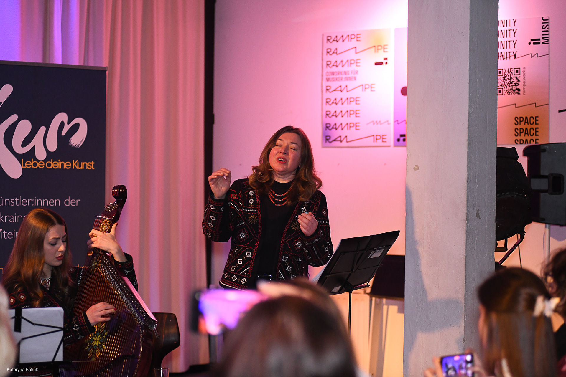 Der zweistimmige Gesang von Mutter (Svitlana) und Tochter (Anna) schuf eine Gänsehaut-Atmosphäre. Die Lieder erzählten von Heimat, Verlust und unerschütterlicher Hoffnung.