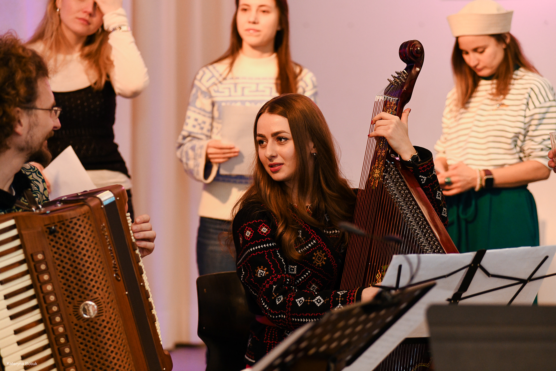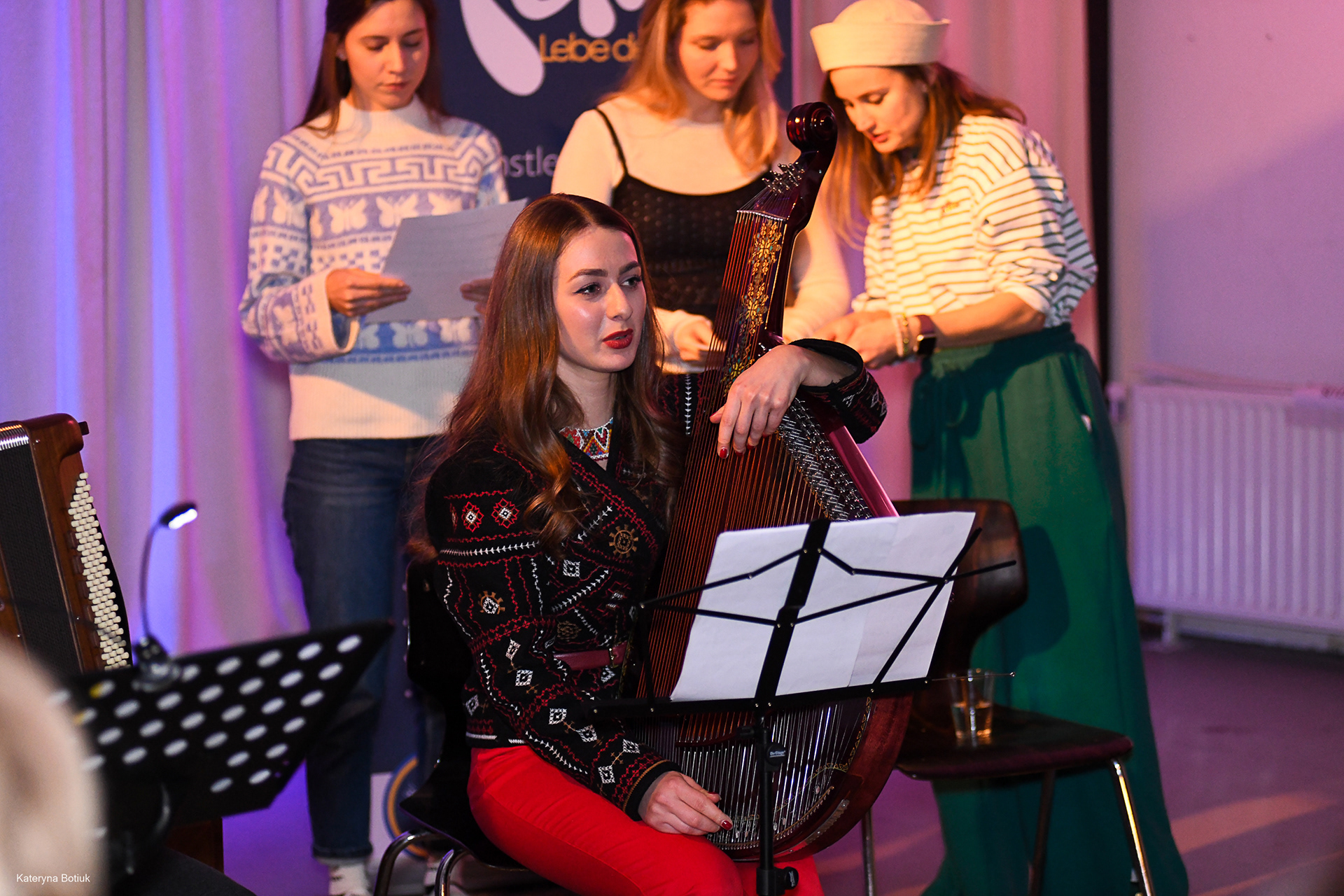 Im Zentrum des Auftritts stand die Bandura, das ukrainische Nationalinstrument. Anna Sonyk, eine preisgekrönte Virtuosin, verzauberte das Publikum mit den sphärischen Klängen dieser Lautenzither, die als Symbol für die Freiheit und die Geschichte der Ukraine gilt.