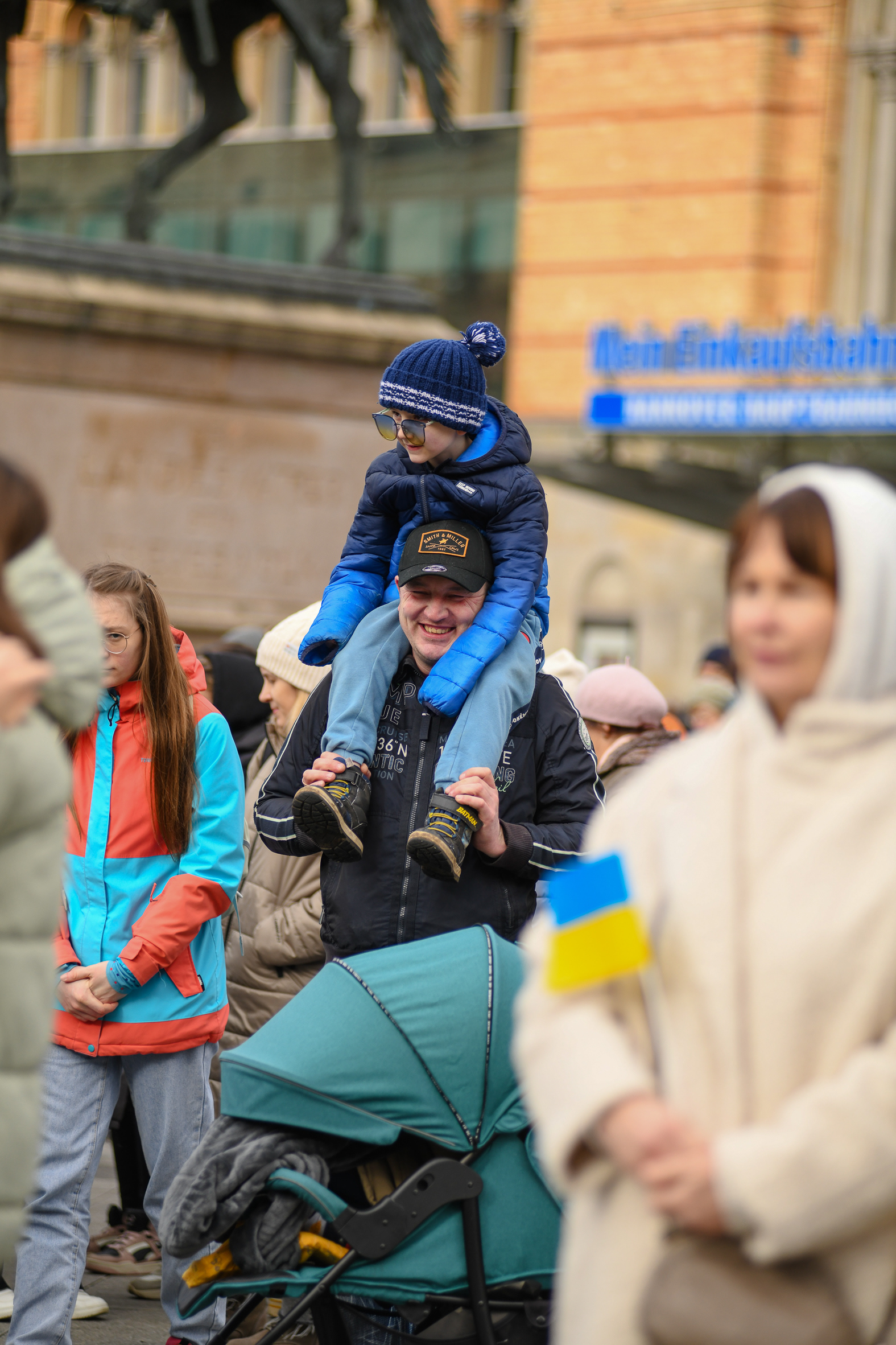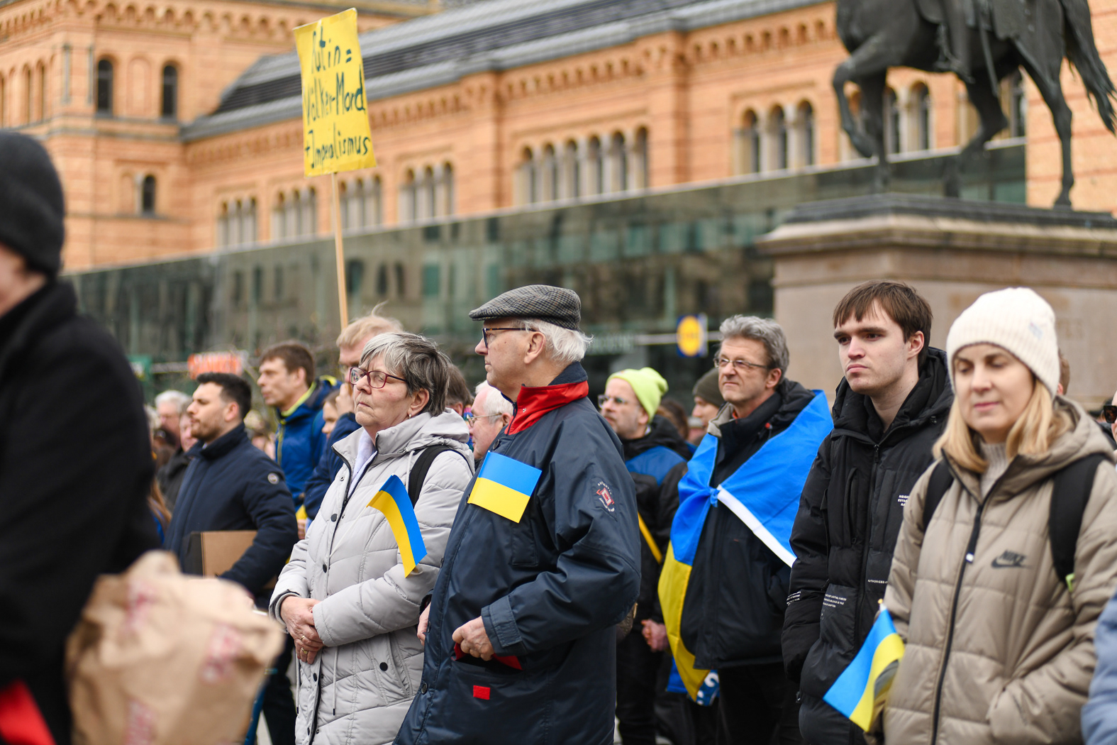 Der 24. Februar 2022 war für viele Familien in der Ukraine ein schreckliches Datum. In Hannover versammelten sich am zweiten Jahrestag des Beginns von Russlands aggressivem Einmarsch in die Ukraine mehr als 700 besorgte Bürger verschiedener Nationalitäten, um ihre Unterstützung für die Ukraine zum Ausdruck zu bringen und sie daran zu erinnern, dass der Krieg immer noch andauert.