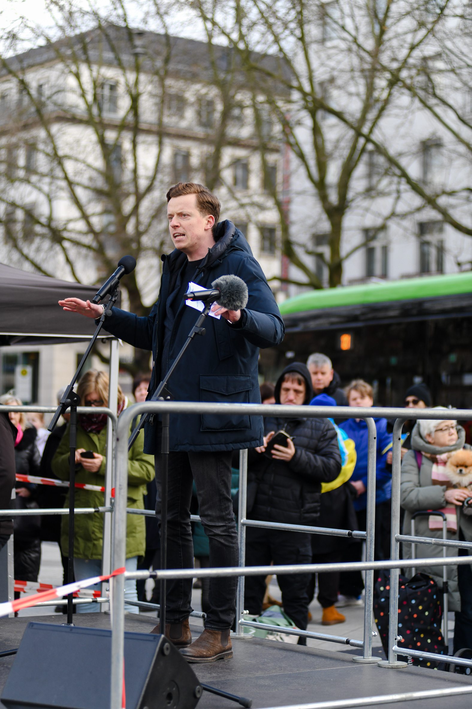 Um 14:00 Uhr versammelten sich die Ukrainer und alle, die ein Ende des Krieges wollen, am Hauptbahnhof, um für die Ukraine zu demonstrieren. Auf der Demonstration sprachen Würdenträger, die ihre Unterstützung und Solidarität mit dem ukrainischen Volk zum Ausdruck brachten. Unter ihnen die Landtagspräsidentin und erste Person in Niedersachsen, Hanni Naber, der Präsident der Region Hannover, Steffen Krach, der Vorsitzende der Sozialdemokratischen Partei Hannovers. Hannover, der Bundestagsabgeordnete und Mitglied des Auswärtigen Ausschusses des Bundestages Adis Akhmetovic, der Bürgermeister von Hannover Belit Onai, die Bundestagsabgeordnete der Grünen Swantehe Michaelsen, die Landtagsabgeordnete der Christdemokraten Martina Mahula und die Studentin und Freiwillige Anastasia Vdovichenko. Moderiert wurde die Demonstration von Josina Kelz.